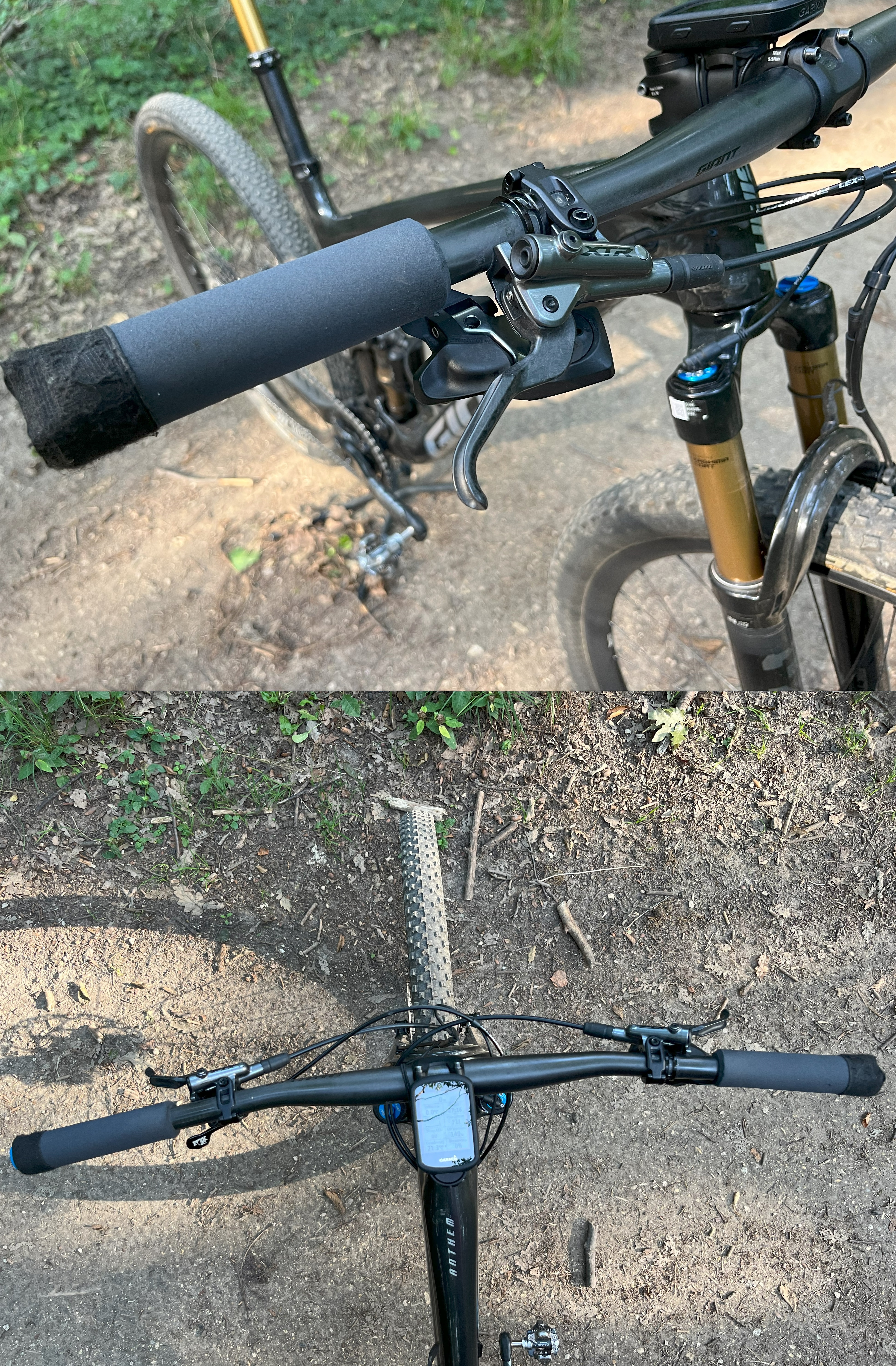 A Zsombor által használt széria bringa néhány apróbb változatás leszámítva teljes egészében széria kerékpár így szinte pont ugyan ebben a felállásban megvásárolható! A kerékpárosok három felületen (na jó, az a három inkább öt) érintkeznek a biciklijükkel ezért nagyon fontos ezeknek az ergonómiája! Ezeket olykor hosszas évek során tapasztalják ki és ha megtalálták a megfelelő kiegészítőket akkor azokhoz nagyon ragaszkodnak! Ezek az érintkező pontok a pedálok, a markolatok és a nyereg. A gyártók a pedál kérdést ilyen szintű bringáknál teljesen elengedik és a sportoló ízlésére hagyják a pedál megválasztását és ezért komolyabb pedálok nélkül szerelik fel a kerékpárjaikat. Zsombor Shimano PD-M9100 XTR pedálokat használ, amik kellően könnyűek és Shimano pedálokhoz híven rendkívül megbízhatóak. A markolatokat is lecserélte, itt a Giant XC Pro markolatok helyett ESI Grip Extra Chunky kerültek fel! Ránézésre nem sok különbséget lehet felfedezni, viszont amíg az M méretű Anthemeket 32 mm átmérővel rendelkező markolatokkal szerelik, addig az ESI Extra Chunky 34 mm! Ez a plusz kettő milliméter már elegendő ahhoz, hogy a kormány szorítása közben ne karmoljon saját tenyerébe! A harmadik (ötödik) érintkező felület az a nyereg. A Fizik nyereg helyett inkább a Prologó Scratch M5 PAS nyergét preferálja karbon pálcákkal! Ez a három változtatás már sok esetben elegendő ahhoz, hogy a versenyző "kényelmesen" tudja teljesíteni a több órás edzéseket és a versenyeket!