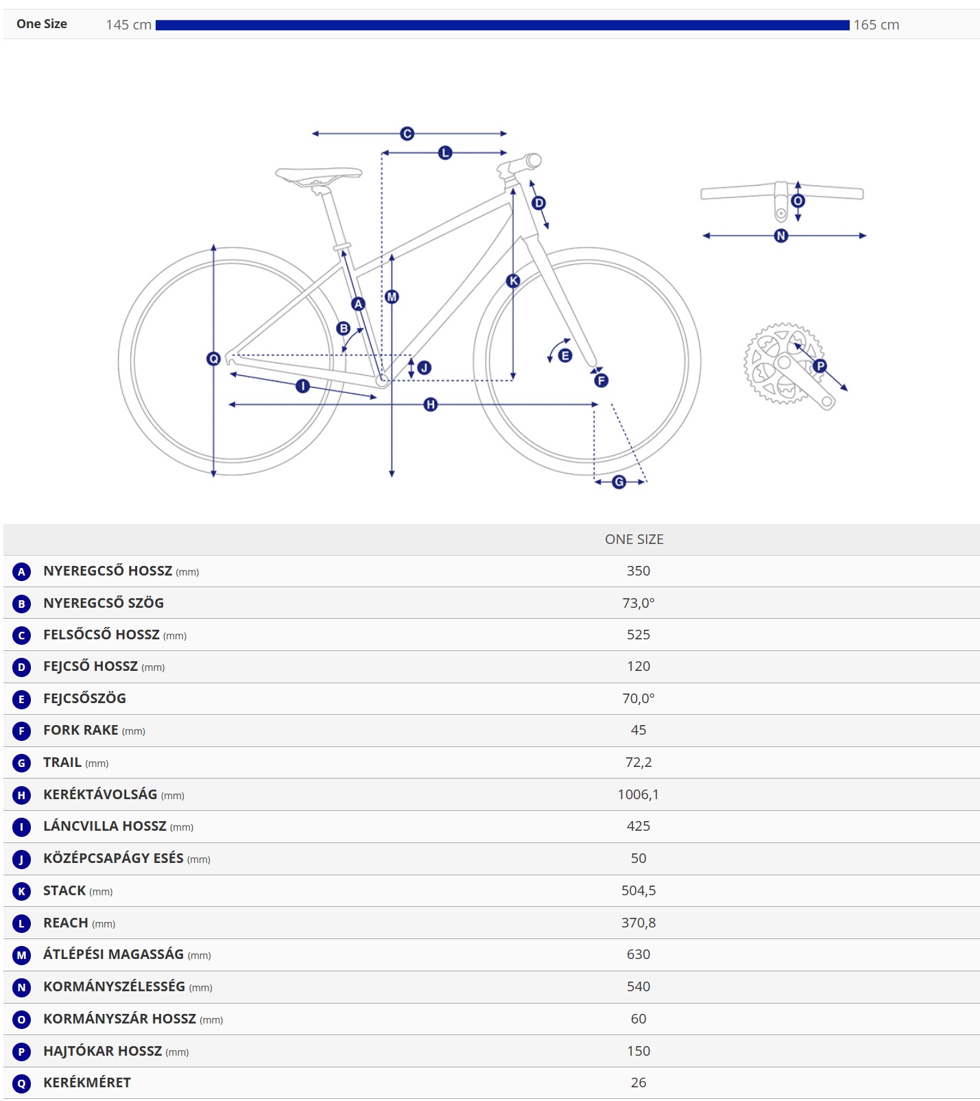 | Hajtómű | alloy, forged, three-piece, 32t, 140mm |